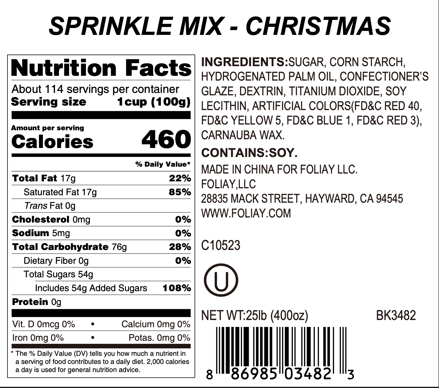* Dairy Free, Egg Free, Nut Free, Gluten Free, Kosher Certified