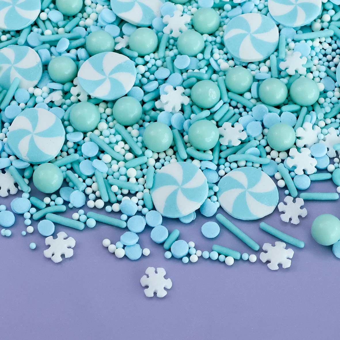 ICY SWIRL SPRINKLE MIX is a sweet blend packed with Blue & White Swirl Edible Cake Decorations, White Snowflakes Quin Sprinkles, 8mm Blue Sugar Pearl and other classic sprinkles to glam up your cakes, cupcakes, and cookies! Perfect for Winter and Christmas celebration!☃️❄️