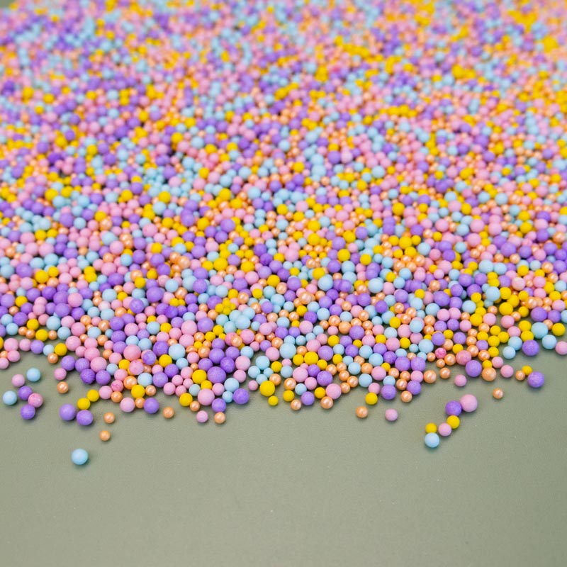 PASTEL PEEPS NONPAREILS MIX is a medley of Yellow, Pink, Lavender, Rose Gold Shimmer and Blue nonpareil beads to top up your cake🍰, cupcake🧁, cookie🍪, cakepop🍭 and chocolate bark🍫 or pretty much anything party-ready for Spring and Easter!