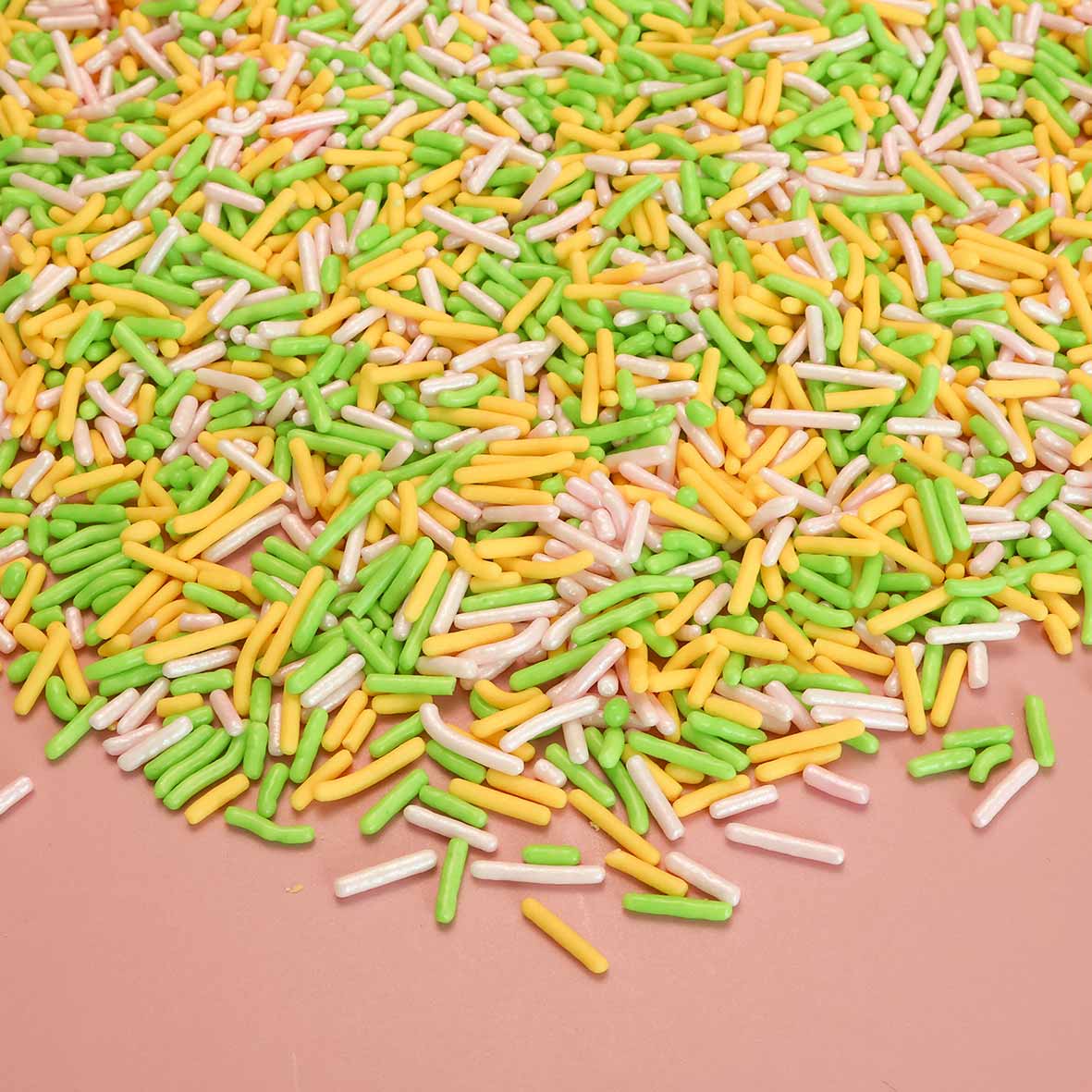 VACAY MODE JIMMIES MIX is a pretty blend of pink pearlized, green and yellow jimmies sprinkles to top up your cake🍰, cupcake🧁, cookie🍪, cakepop🍭, chocolate bark🍫! Perfect for Spring🌾, Summer🏝️ and Cinco de Mayo🌮 celebration!