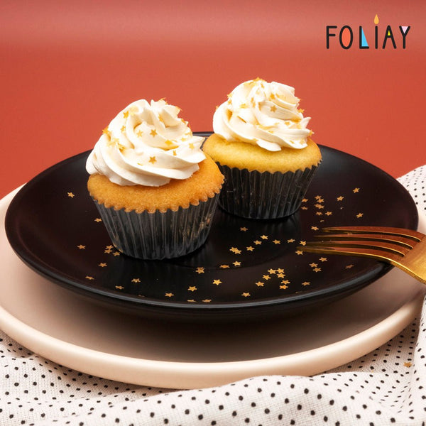 Decorate your cakes, cookies, cupcakes and more with Foliay's eye catching edible glitter shapes.