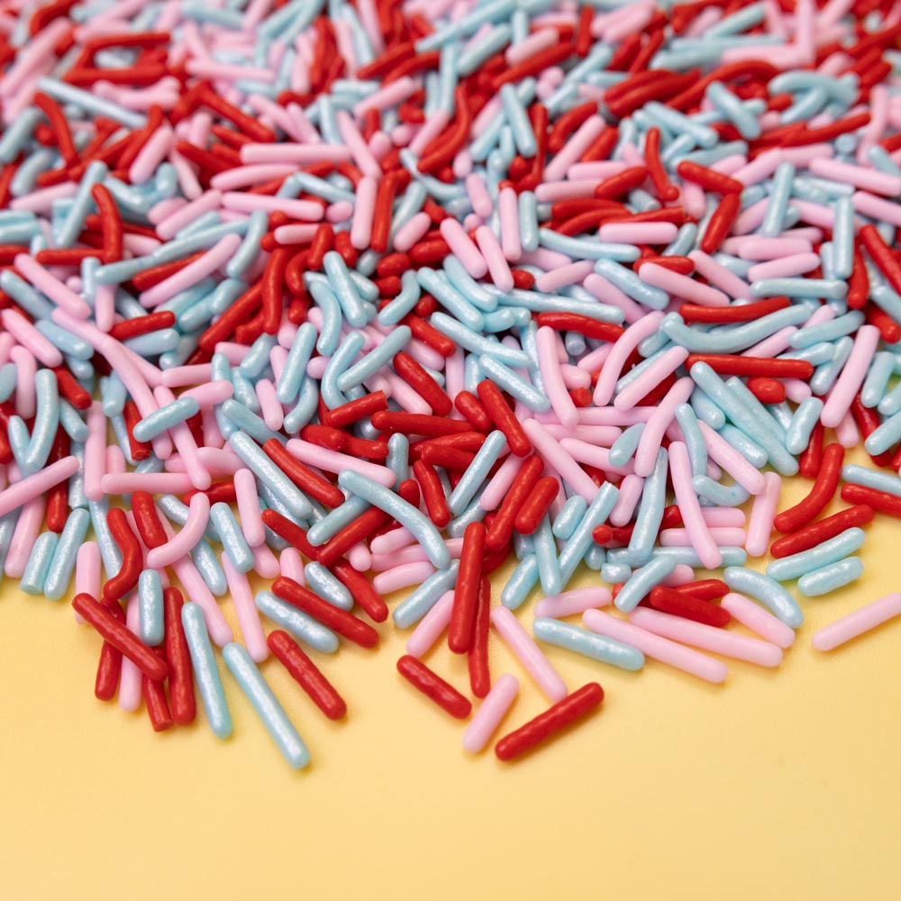 LOVE POTION JIMMIES MIX is a pretty blend of Red, Pink, and Blue Jimmies Sprinkles to top up your cake🍰, cupcake🧁, cookie🍪, cakepop🍭, chocolate bark🍫! Perfect for Valentin's Day💕, Weddings💍and Mother's Day💐!