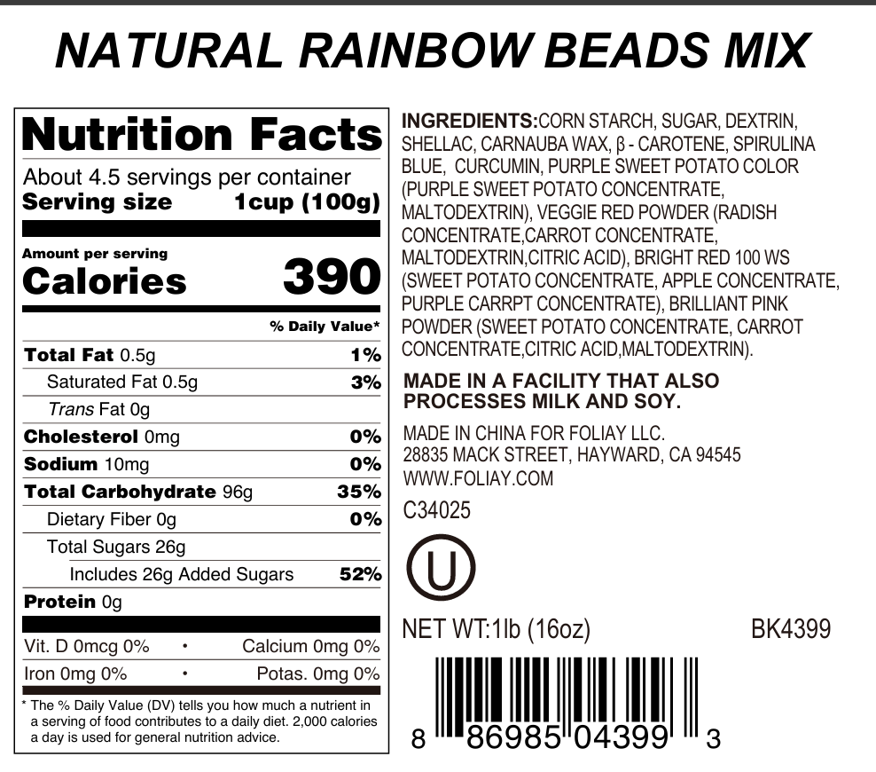 Dietary Information: Egg Free, Gluten Free, Kosher CertifiedNatural Colored