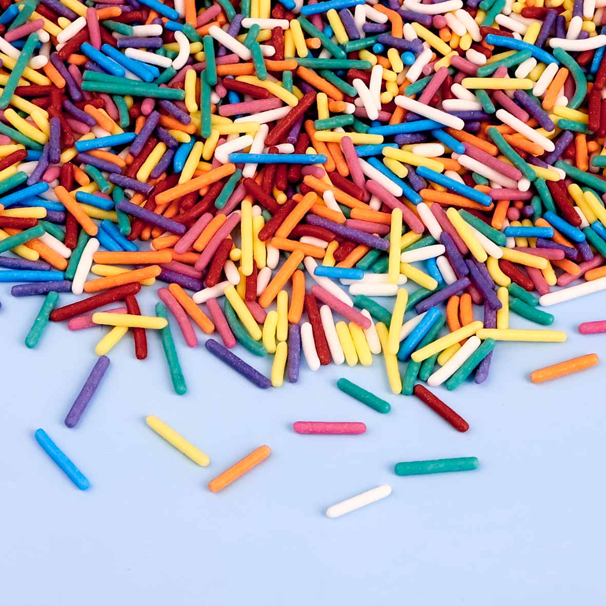 CLASSIC RAINBOW JIMMIES MIX is a fun blend that pack with vibrant colors and sweet flavor! These classic sprinkles are thin, long and have a nice crunch to them. This blend is perfect to top your cakes, cupcakes, cookie and pretty much anything party-ready for any occasion! Bulk sprinkle mixes and wholesale pricing are available.
