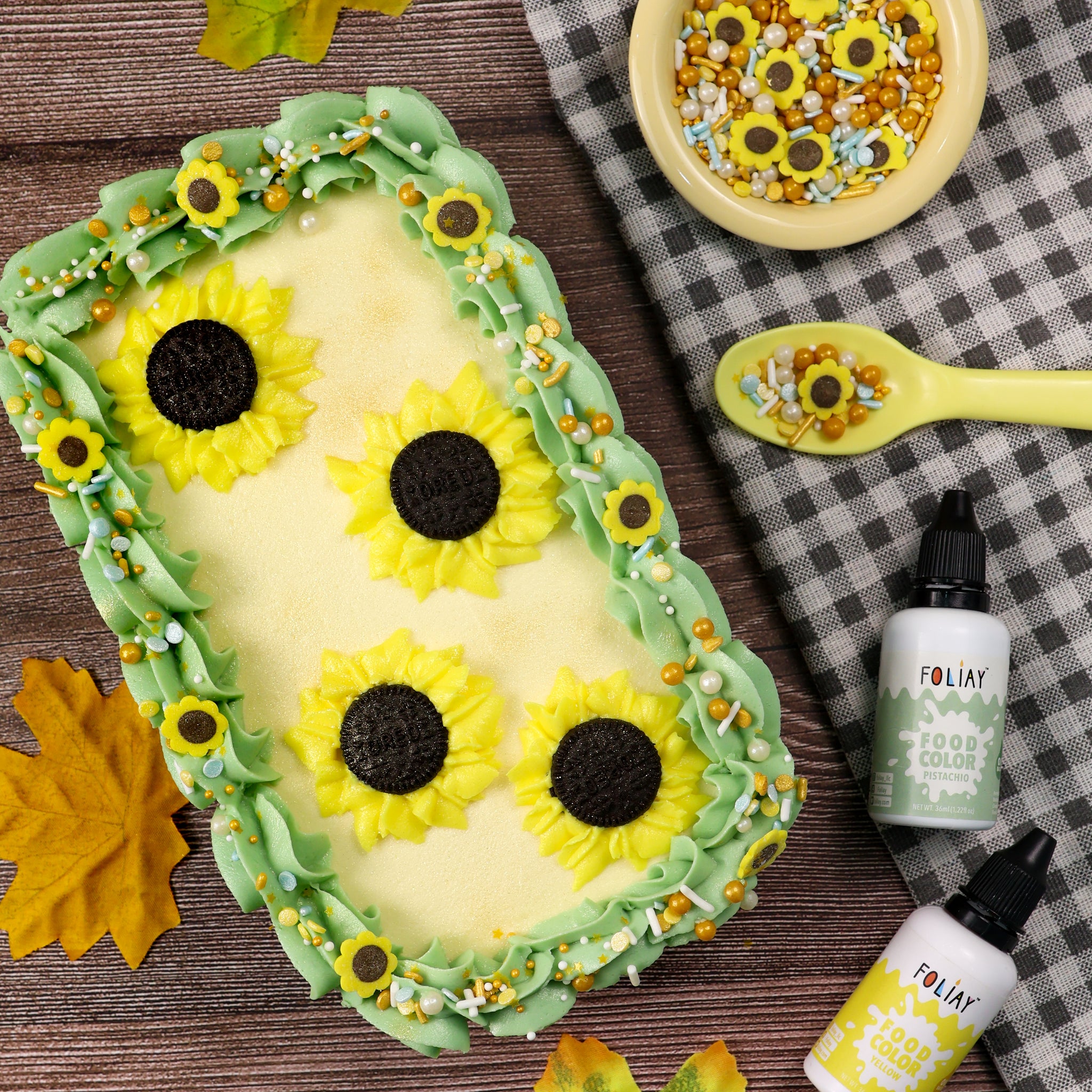 SUN-KISSED SPRINKLE MIX is a radiant blend of sunflower candy shapes, gold mini beads, blue pearl bits, and other classic sprinkles, perfect for brightening up your cakes🍰, cupcakes🧁, cookies🍪, cake pops🍭, and chocolate bark🍫! Ideal for adding a touch of sunshine to any celebration! ☀️
