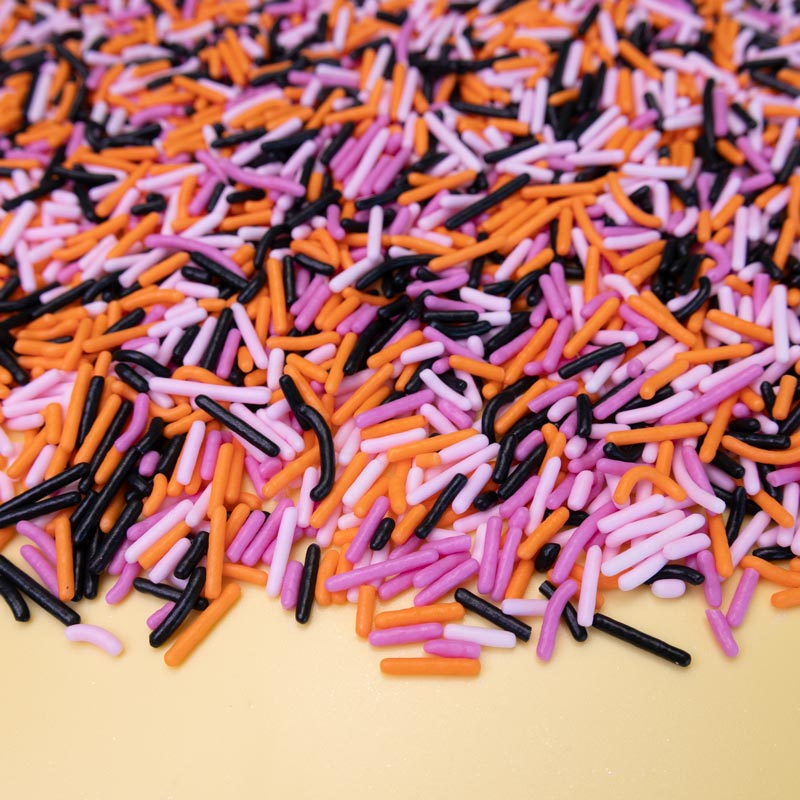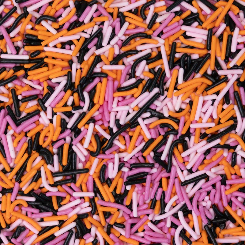 VAMPIRE VIXEN JIMMIES MIX is a pretty blend of Orange, Pink, Black and Hot Pink Jimmies Sprinkles to top up your cake🍰, cupcake🧁, cookie🍪, cakepop🍭, chocolate bark🍫Perfect for Halloween, Vampire-themed parties and Birthday celebration!