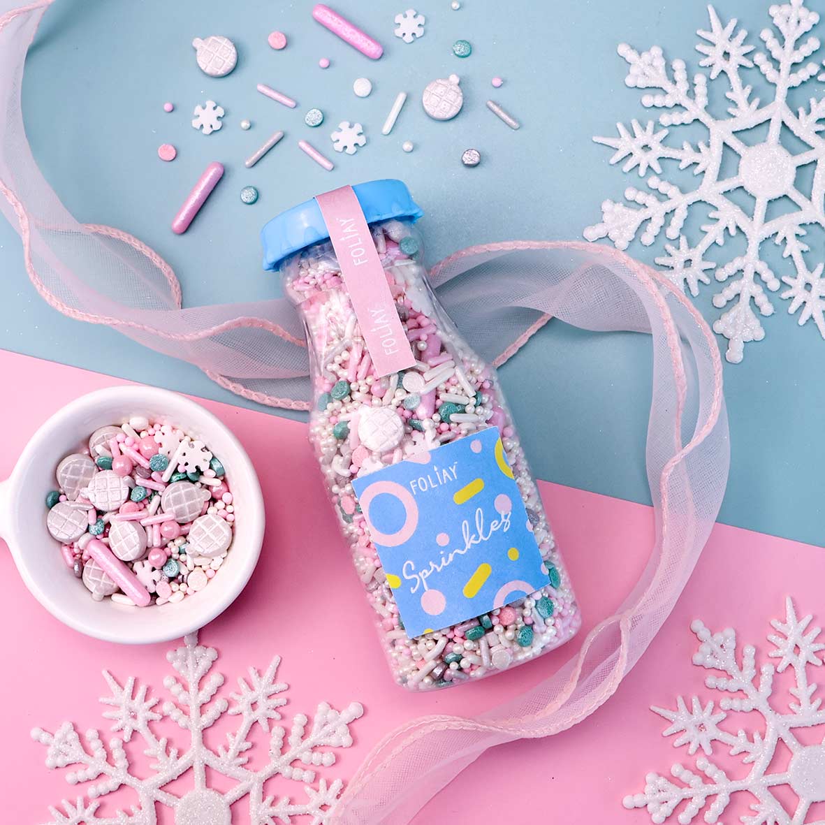HOLIDAY CHEER SPRINKLE MIX is a sweet blend packed with Disco Ball Candy Sprinkles, Green Pearl Quin Sprinkles, Pink Pearlized Rod and other classic sprinkles to glam up your cakes, cupcakes, and cookies! Ideal for Winter and Christmas parties!❄️🎄