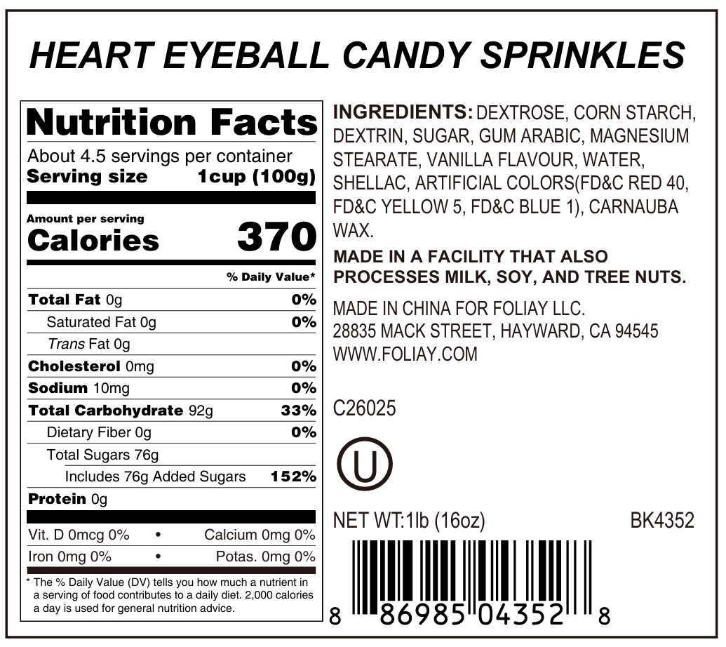 These HEART EYEBALL CANDY SPRINKLES are pack with sweet flavor, crunchy, and perfectly shaped. Perfect to top your cakes, cupcakes, cookies, and more for any occasion! Bulk sprinkle mixes and wholesale pricing are available.
